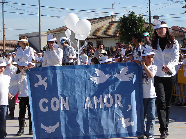 A continuación tomaron la palabra los alumnos representantes de los diferentes cursos, que portaban una pancarta y palabras alusivas a la paz y la buena convivencia, sujetas a globos blancos. También leyeron un pequeño manifiesto por cada ciclo sobre el tema y se intercalaron las canciones “Color esperanza”, “Queremos paz” y “Que canten los niños”, cantadas al unísono por todos los presentes.