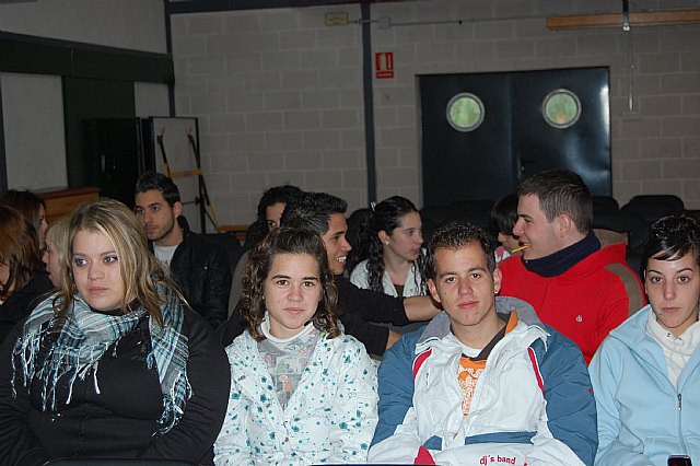 El Concejal de Seguridad Ciudadana, Fernando Almagro, y el sargento Jefe de la Policía Local, Francisco Pellicer, han asistido a una conferencia celebrada en el CES Villa de Alguazas, relacionada con la Seguridad Vial.