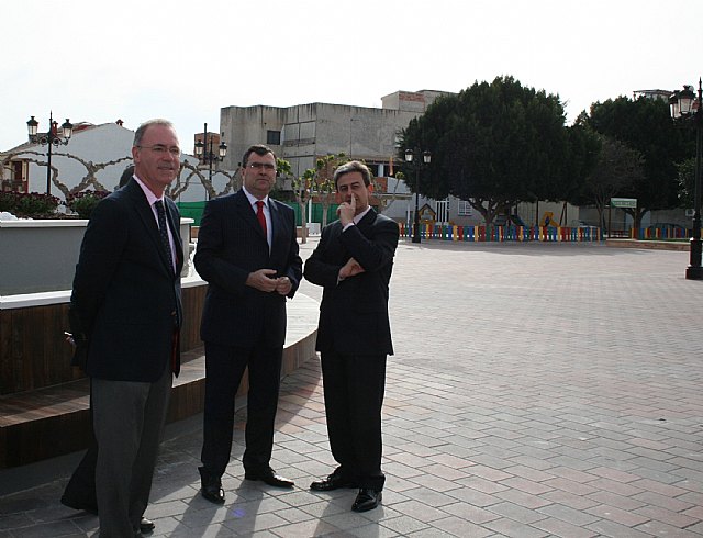 El consejero de Obras Públicas y Ordenación del Territorio, José Ballesta, acompañado por el alcalde de Alguazas, José Antonio Fernández, inauguró hoy las obras de remodelación y mejora de la accesibilidad de la plaza Enrique Tierno Galván situada frente al Ayuntamiento de la localidad.