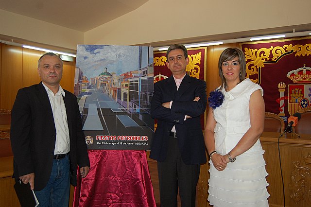 El alcalde de Alguazas, José Antonio Fernández Lladó, la concejala de Festejos, Silvia Ruiz Serna, y el autor de la portada del programa de las fiestas, Joseph Francés, han presentado los actos que se celebrarán en Alguazas durante las dos próximas semanas con motivo de las Fiestas Patronales 2010.