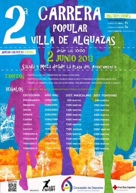 La II Carrera Popular "Villa de Alguazas" ya está en su fase de precalentamiento y es que a partir de este Viernes, 19 de Abril, se halla abierto el plazo de inscripción para este evento deportivo de proyección nacional que se celebrará el próximo 2 de Junio (a las 10 de la mañana como hora de inicio) en el marco de las Fiestas Patronales 2013 de la localidad.