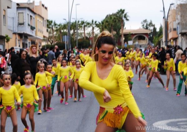 Más de medio millar de alguaceños de toda clase, edad y condición llenaron las calles de la localidad luciendo vistosos atuendos y alegres coreografías en un apoteósico despliegue de chispa, color y ritmo que, protagonizado por cuatro grupos de baile del municipio y partiendo de la Plaza de la Libertad del populoso Barrio del Carmen de la población, dio esencia al Carnaval 2014.