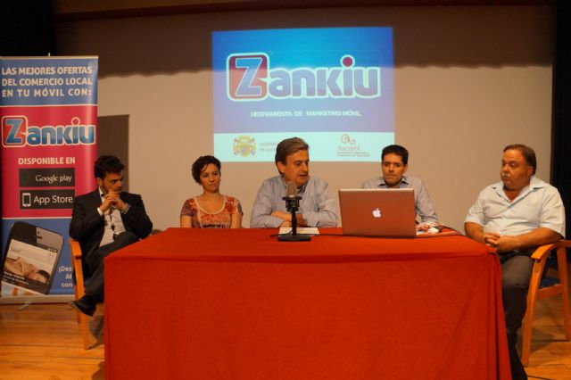 El Salón de Actos de la Casa de la Cultura de Alguazas sirvió en la noche del pasado martes, 27 de mayo, de escenario para mostrar al destacado número de comerciantes y empresarios presentes la nueva herramienta gratuita "Zankiu" de marketing y fidelización de clientes aplicada a la tecnología de los teléfonos móviles y desarrollada por la empresa puntera en su sector "Mapeka".