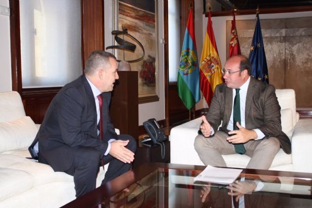 El presidente de la Comunidad, Pedro Antonio Sánchez, se reunió hoy en el Palacio de San Esteban con el alcalde de Alguazas, Blas Ángel Ruipérez, para analizar algunos de los asuntos de interés para el municipio relacionados con infraestructuras, equipamientos deportivos y turismo, entre otros.