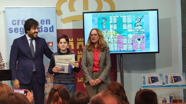 El alumno Mario Hurtado Banegas, de 6º de primaria del CEIP “Nuestra Señora del Carmen”, ha sido uno de los 10 ganadores de la fase regional de la campaña Crece en Seguridad. Mario ha recogido hoy su premio de manos del Consejero de Empleo, Investigación y Universidades, Miguel Motas.