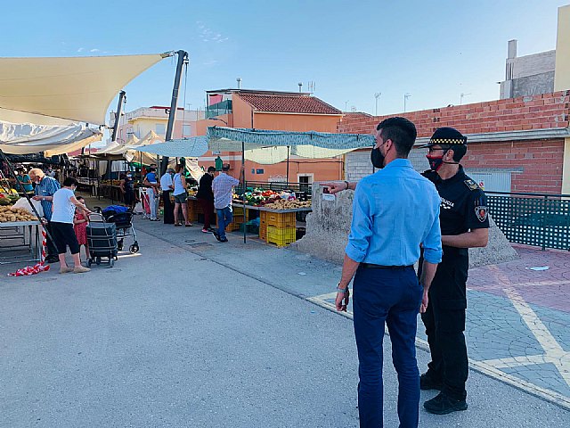 El edil de Comercio, José Gabriel García Bernabé, visitó ayer el mercado semanal al aire libre para preparar nuevas medidas de prevención del COVID-19 para evitar contagios y hacer el mercado un lugar más seguro.