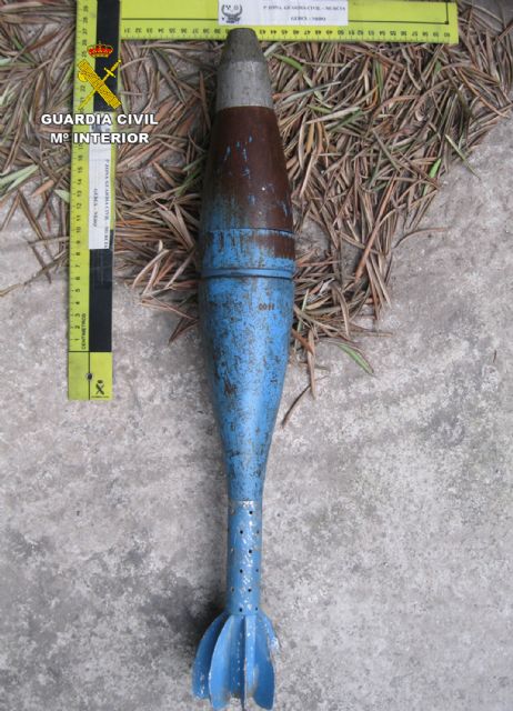 La Guardia Civil de la Región de Murcia ha retirado del interior de un vehículo que iba a ser desguazado en Alguazas una granada de mortero de 81 mm., que, aunque tenía apariencia de real, carecía de carga explosiva.