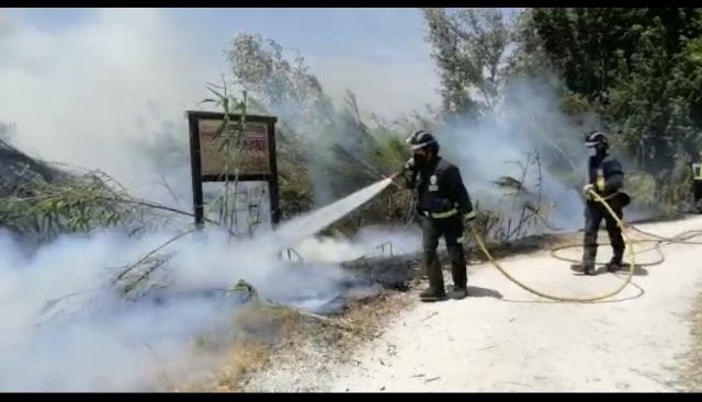 Bomberos del Consorcio de Extinción de Incendios y Salvamento de la Región de Murcia, han apagado un de incendio de cañas y matorral declarado en la orilla del río, en el término municipal de Alguazas.