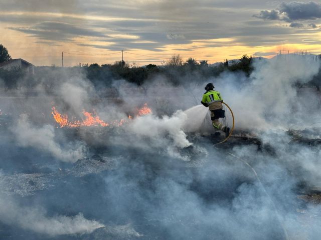 Bomberos extinguen un incendio agrícola declarado en Los Beltranes, Alguazas
