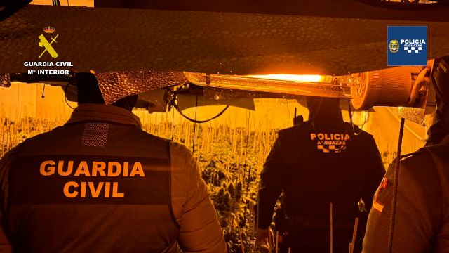 La Guardia Civil de la Región de Murcia y la Policía Local de Alguazas han desarrollado de forma conjunta la operación 'Vidria', una investigación iniciada para esclarecer varias actividades ilícitas relacionadas con el tráfico de drogas, que se ha saldado con varios invernaderos tipo indoor desmantelados en Alguazas, que tenían en última fase de cultivo más de medio millar de plantas de cannabis.
